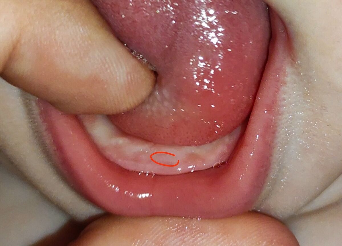 Ну, саме ріжучого края зуба я не бачу. На фото просто слизова. Але дитину вже можуть турбувати ясна. Моєму допомагав дентокінд. В нього накопичувальна дія.