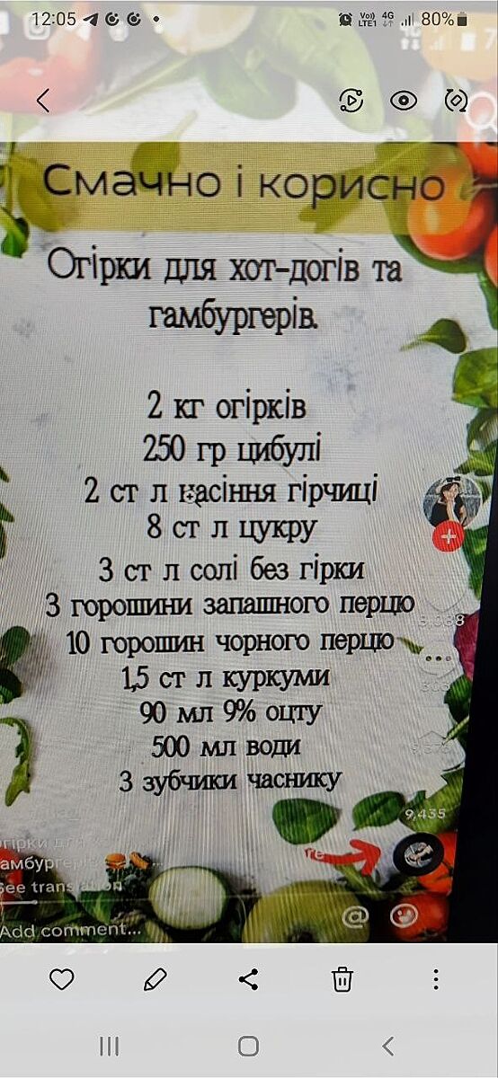 В мене перший рецепт просто на консервацію, стопка ще радянська на палець неповна солі і стільки ж оцту. Я ще ложку столову повну цукру кидаю інколи, її майже не чути але тоді смак більш виражений виходить. І інколи ложку гірчичного порошку.