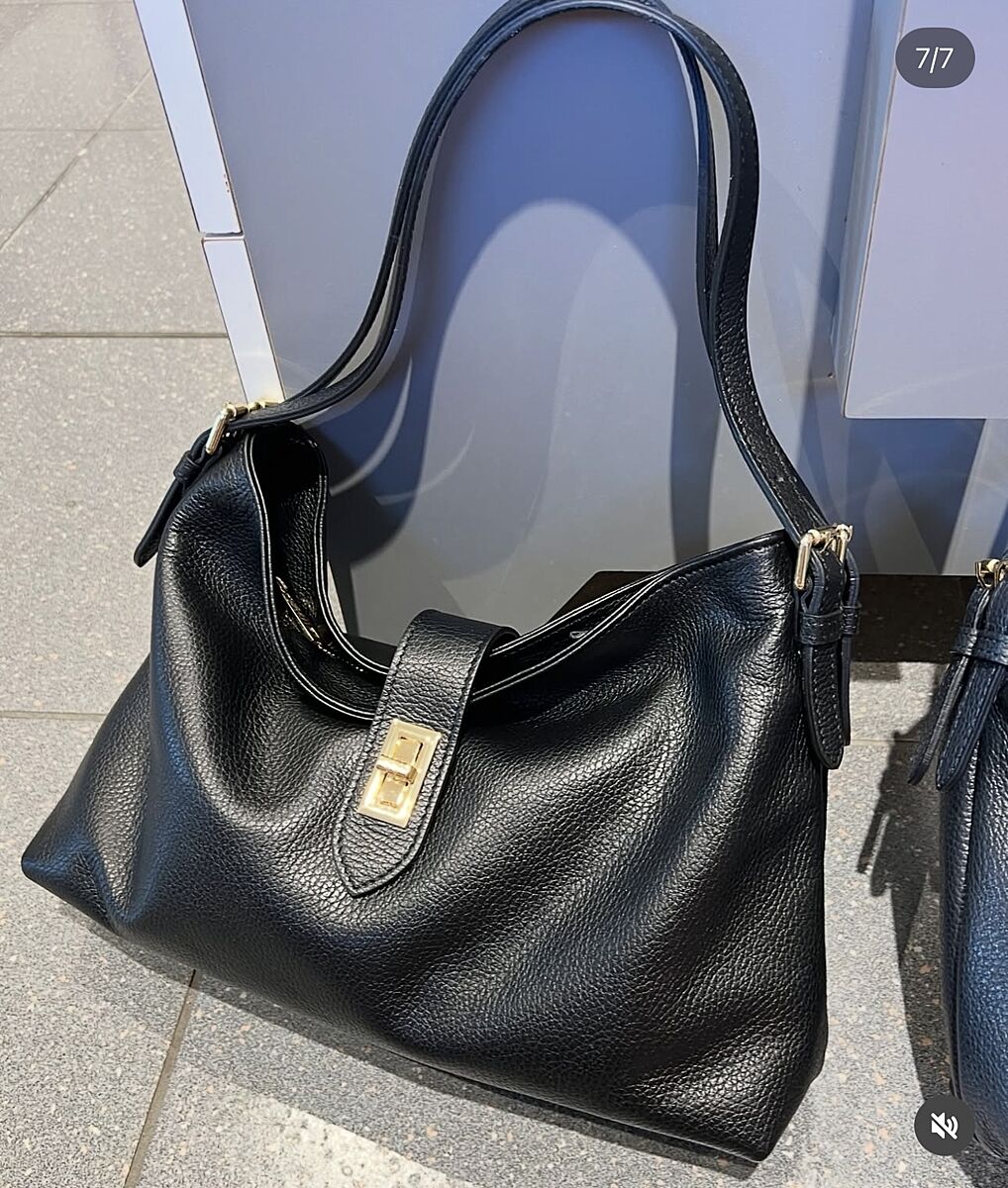 и крепление нормальное. а не так как на остальных фото - ненавижу, когда сумка смотрится как оттопыренная. а всех кроме 3-го фото именно и будет такой вид, когда в них что-то положат. не сумка, а торбочка