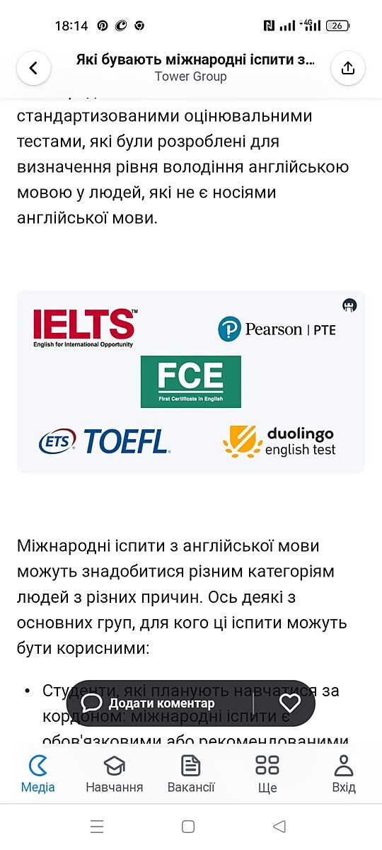 Ось всі міжнародно визнані іспити з англійської мови.Вашого тут не має, як і не має такого міжнародно визнаного центру складання іспитів.Всі офіційні іспити проводяться в одному місті в Києві.