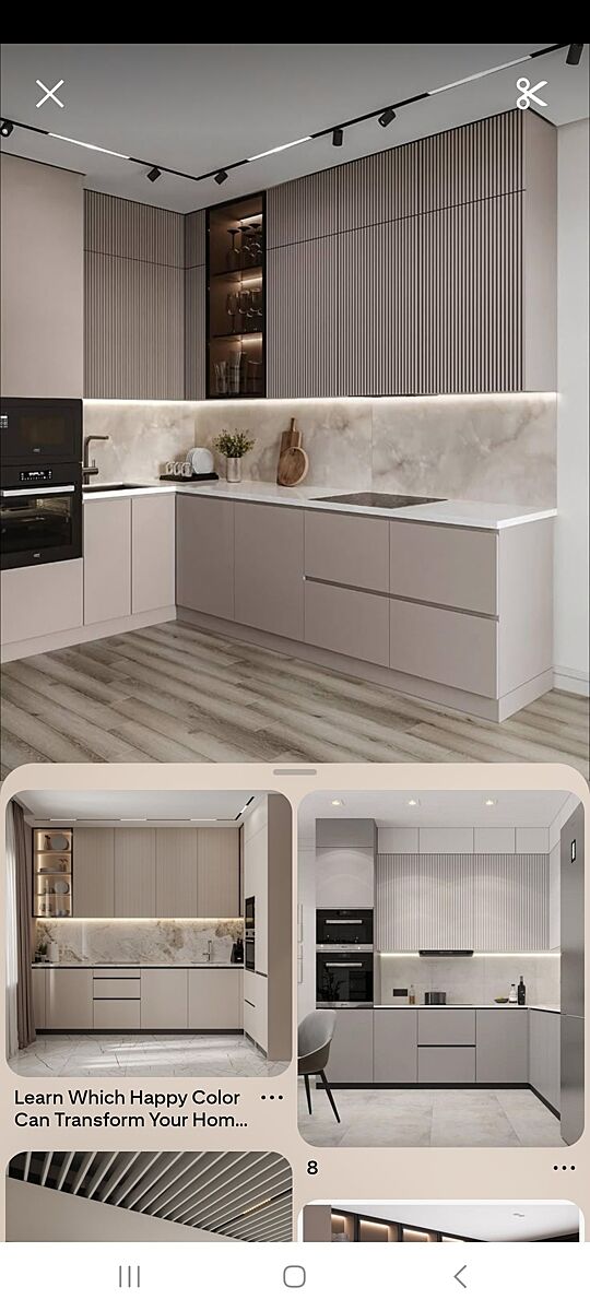 Не зливається в одну пляму? Колір кухні як ваш називається? Не покажете шматочок?