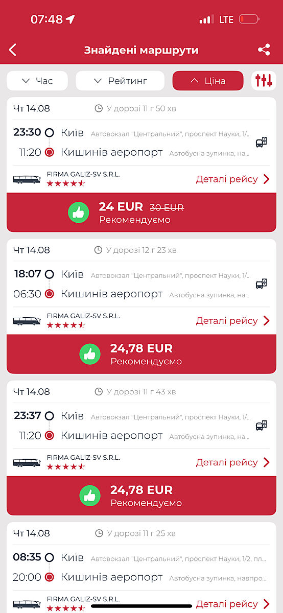 Зайшла на галтранс. В 18.07 всі місця зайняті. На рейс 18.00 повно вільних місць. Ви на який час дивитеся?