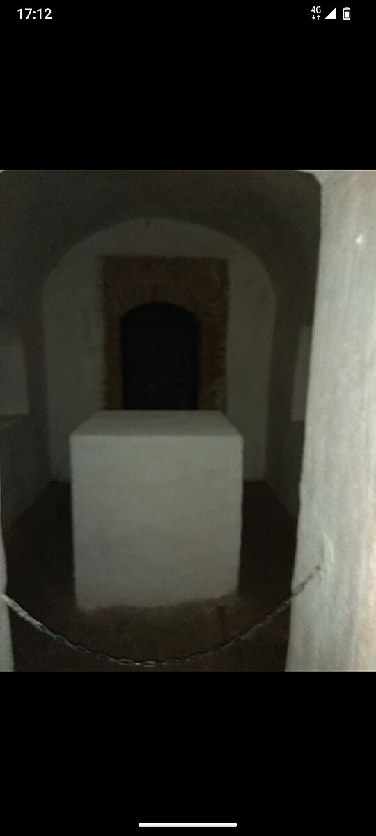 там вхід всередині Петропавлівської церкви під сходами, дуже глибоко, темно і страшно, й веде єдина на цей час придатна навіть не для відвідин, а просто для того, щоб її намагатися досліджувати, галерея до Успенського собору