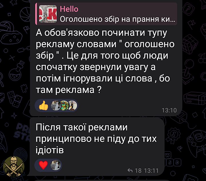 Человек выставил рекламу. И через минуту какому-то мужчине не понравилось слово ’збір’ и он начал ссорится с людьми по этому поводу.