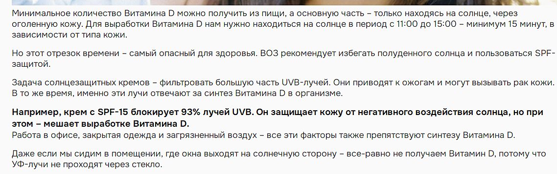 А у меня после всего лета на море - дефицит. И остеопороз. Потому круглогодично вынуждена принимать