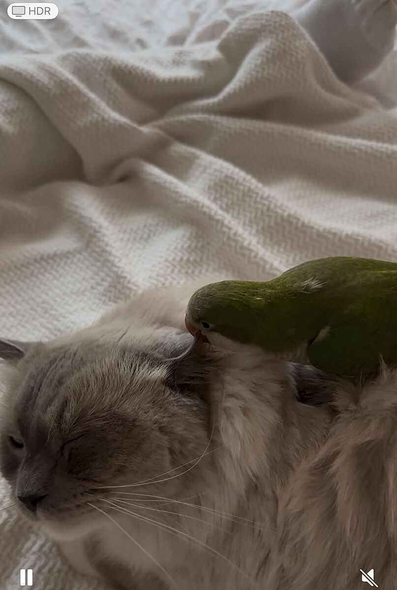 Ще ні. Папуга зі мною завжди, я його самого не залишаю, помалу привчаю своїх, що він «свій».