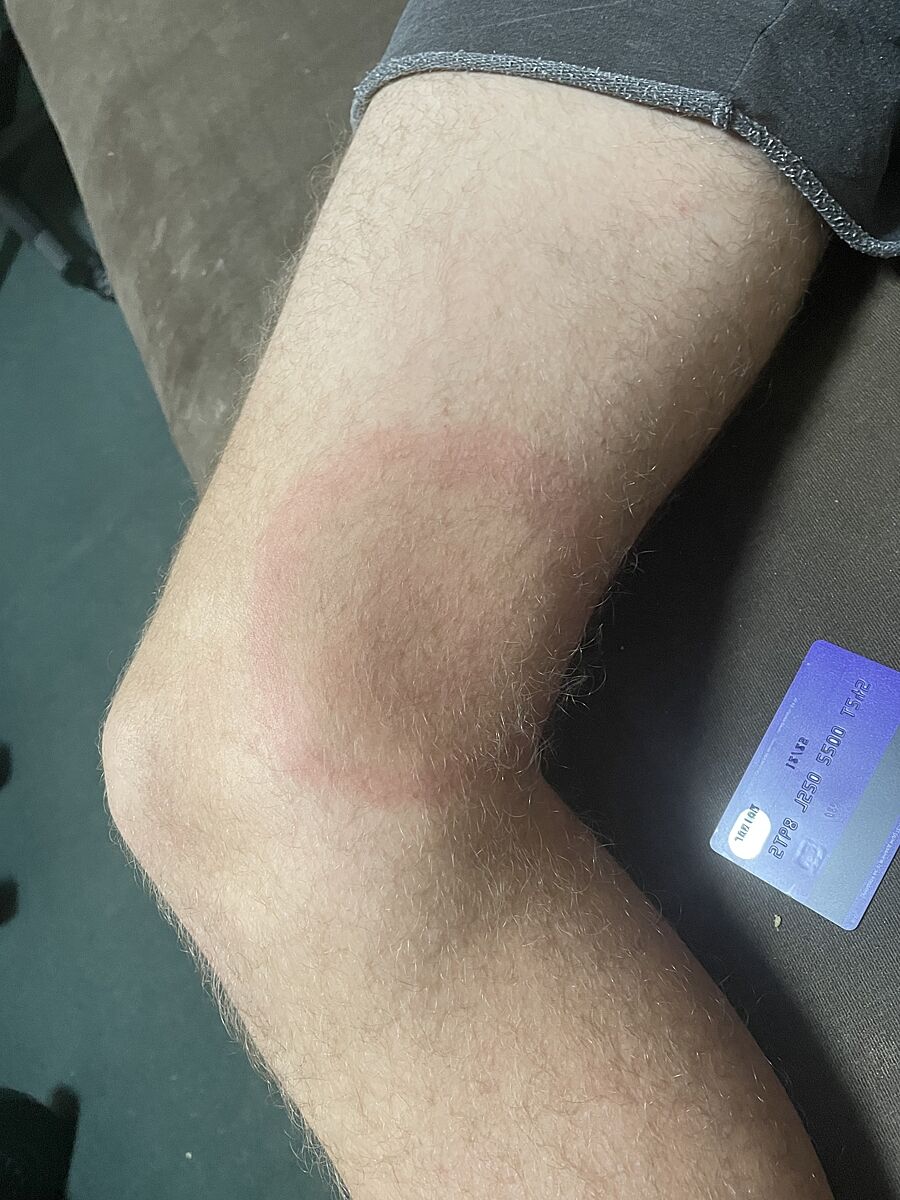 Це дійсно схоже на кільцеву еритему, треба в інфекційне відділення і починати лікування без аналізів.