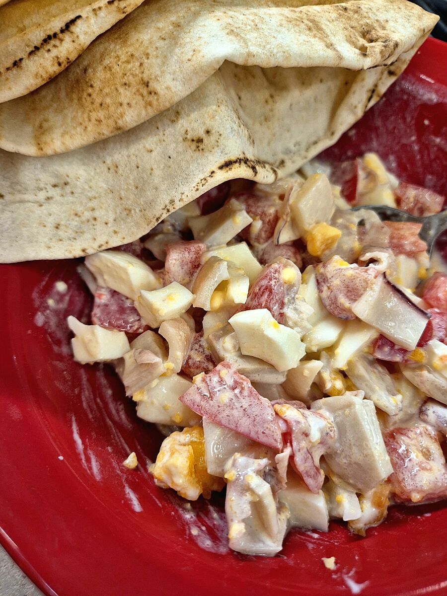 А з чого ваш салат? Яйця, кальмари, помідори?