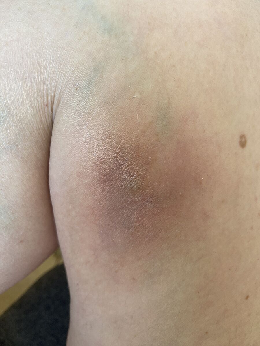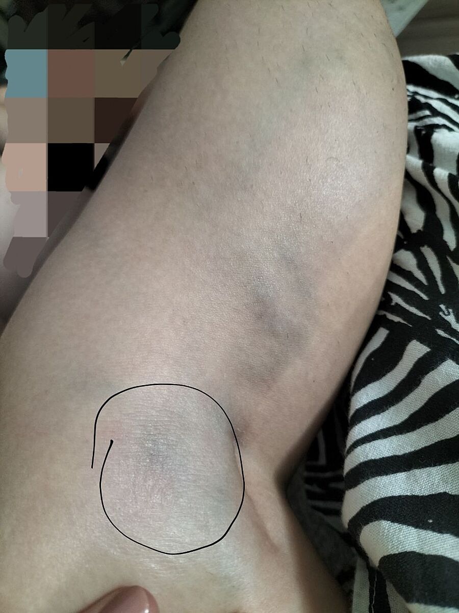 У мене якраз свого часу пішов тромб так з під коліна вгору. Воно на фото ніби не червоне, тож якщо не гаряча та ділянка, не чешеться, не розпирає - добре. У мене краснота рухалася по ходу вени поступово вгору, скінчилося операціями. І так тричі у різні роки. Сходіть обов´язково до судинного хірурга, флеболога якнайшвидше. Поки здайте коагулограму і Д-дімер.