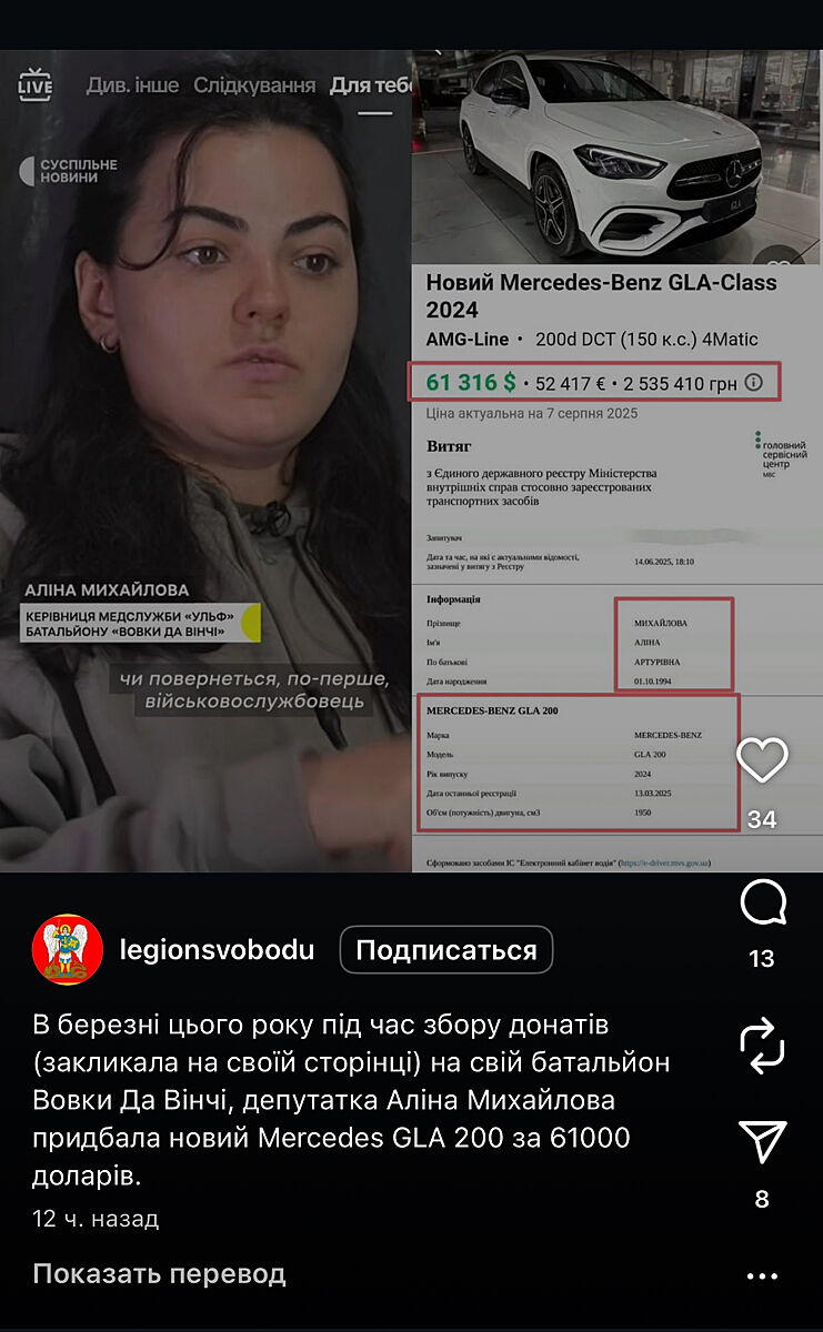 Слухайте, я не знаю за які гроші Аліна купила це авто. Але всі мої знайомі-військові, які давно на фронті, вже і машини круті купили, і квартири, і все, що хотіли. Це прості хлопці, з села. Не думаю, що для пересічного депутата Київради (вона ж діючий депутат? чи вже ні?) є проблемою авто за 60 тис. В мене на парковці кожна третя така стоїть.