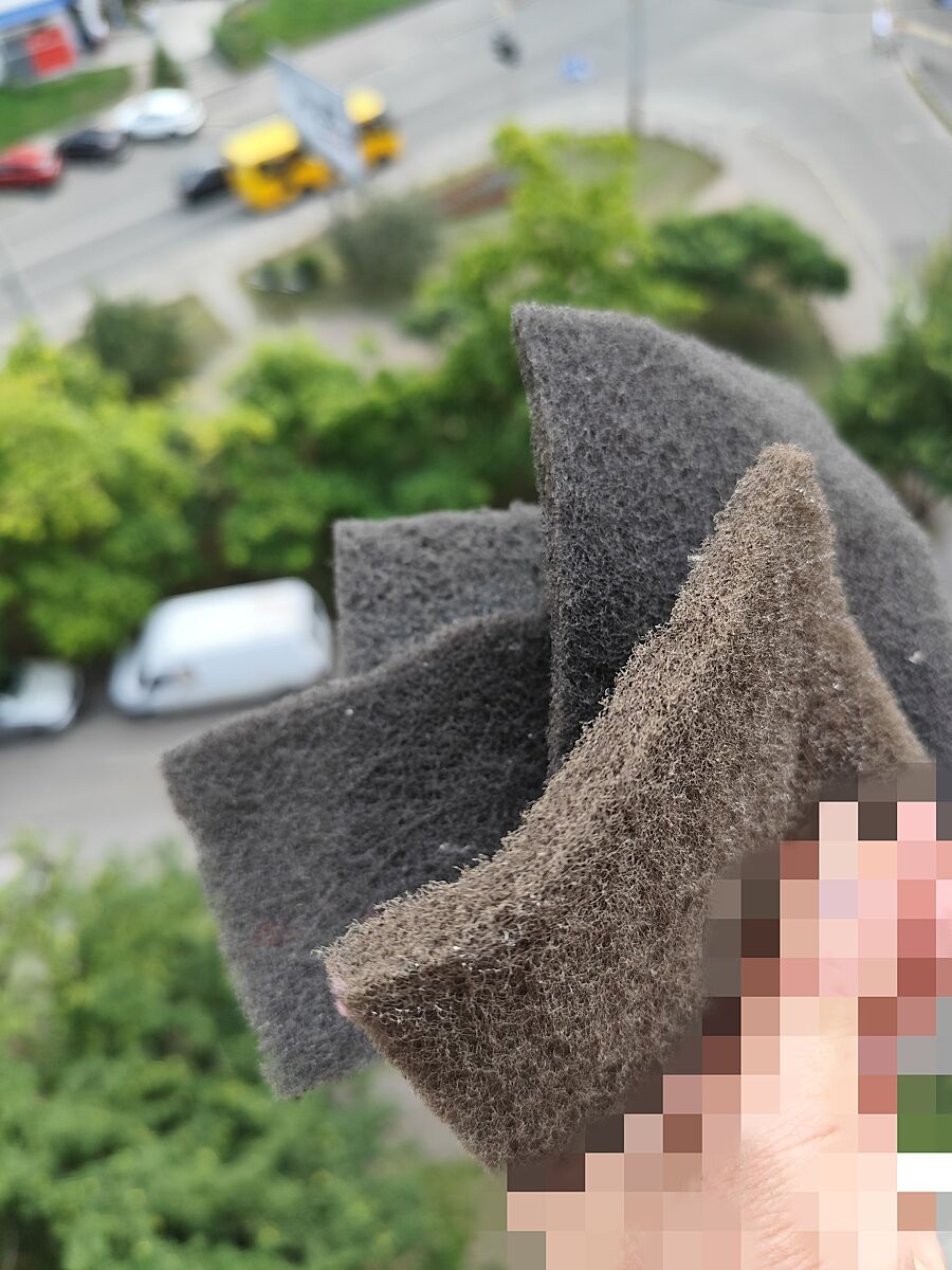 Я точно понимаю что это.У меня этот материал в рулонах на работе,по 2метра высотой.Есть у них и для посуды,и для шлифовки,и для многого другого.Чтобы легче было отличать степень жёсткости,они делают их разным цветом.У нас они серого ,белого и коричневого.Есть красные,зелёные и др.цветов.