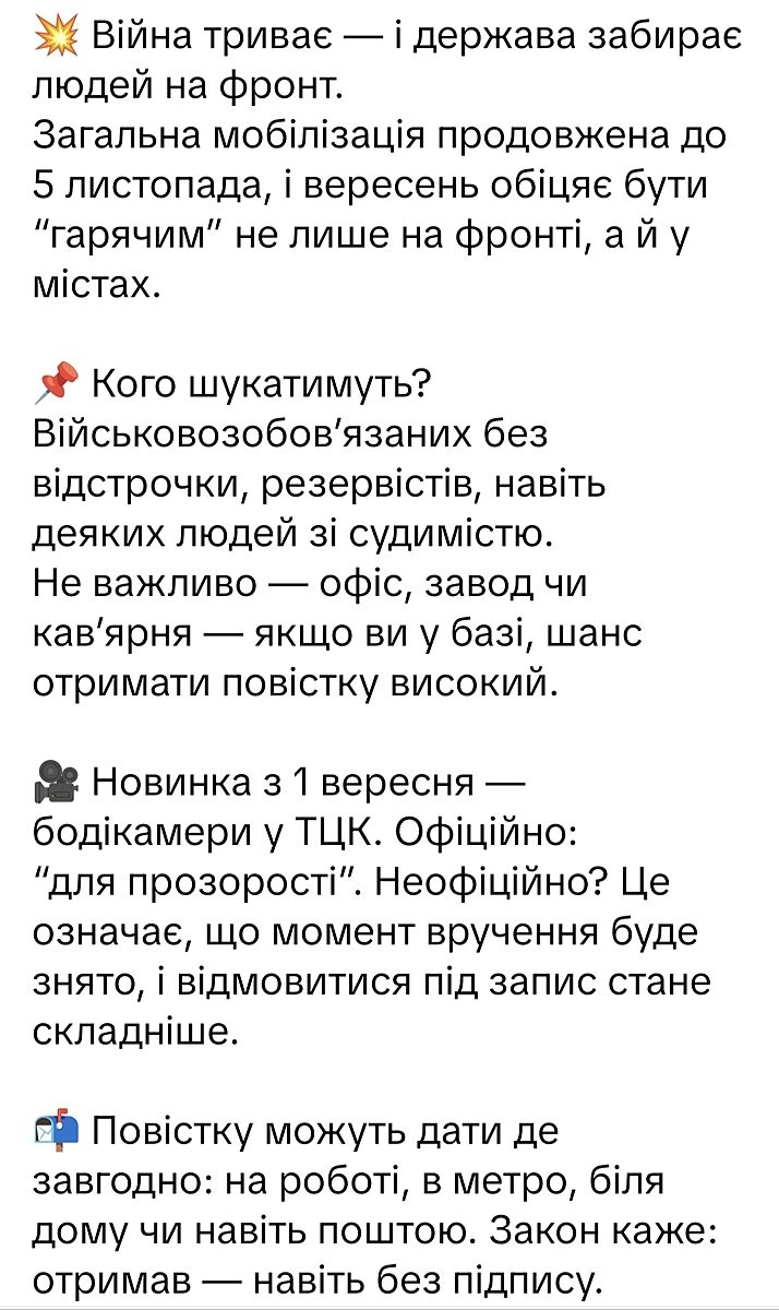 Подруга сейчас звонила с Одесской области. Тоже мужа загребли в четверг. Шёл на работу, даже документов при нем не было. Сидит в тцк, ждёт распределения