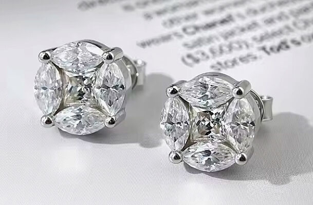 Серебро, покрытие родий, муассаниты с огранкой маркиз и принцесса.