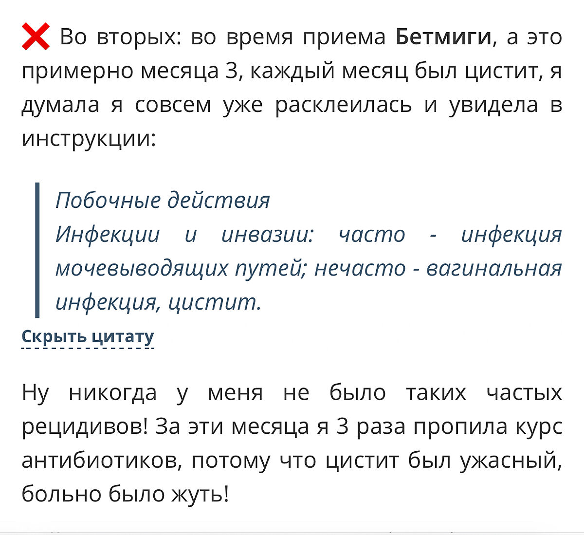 Я тільки відкрила і одразу знайшла відгук,що бетміга викликає цистит