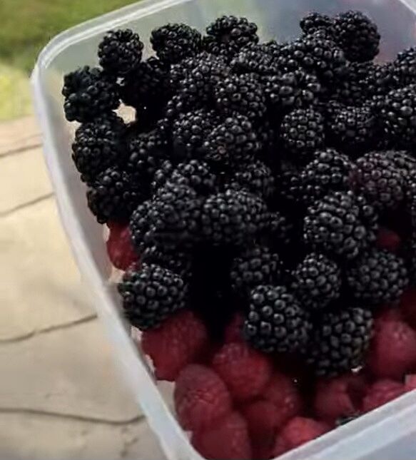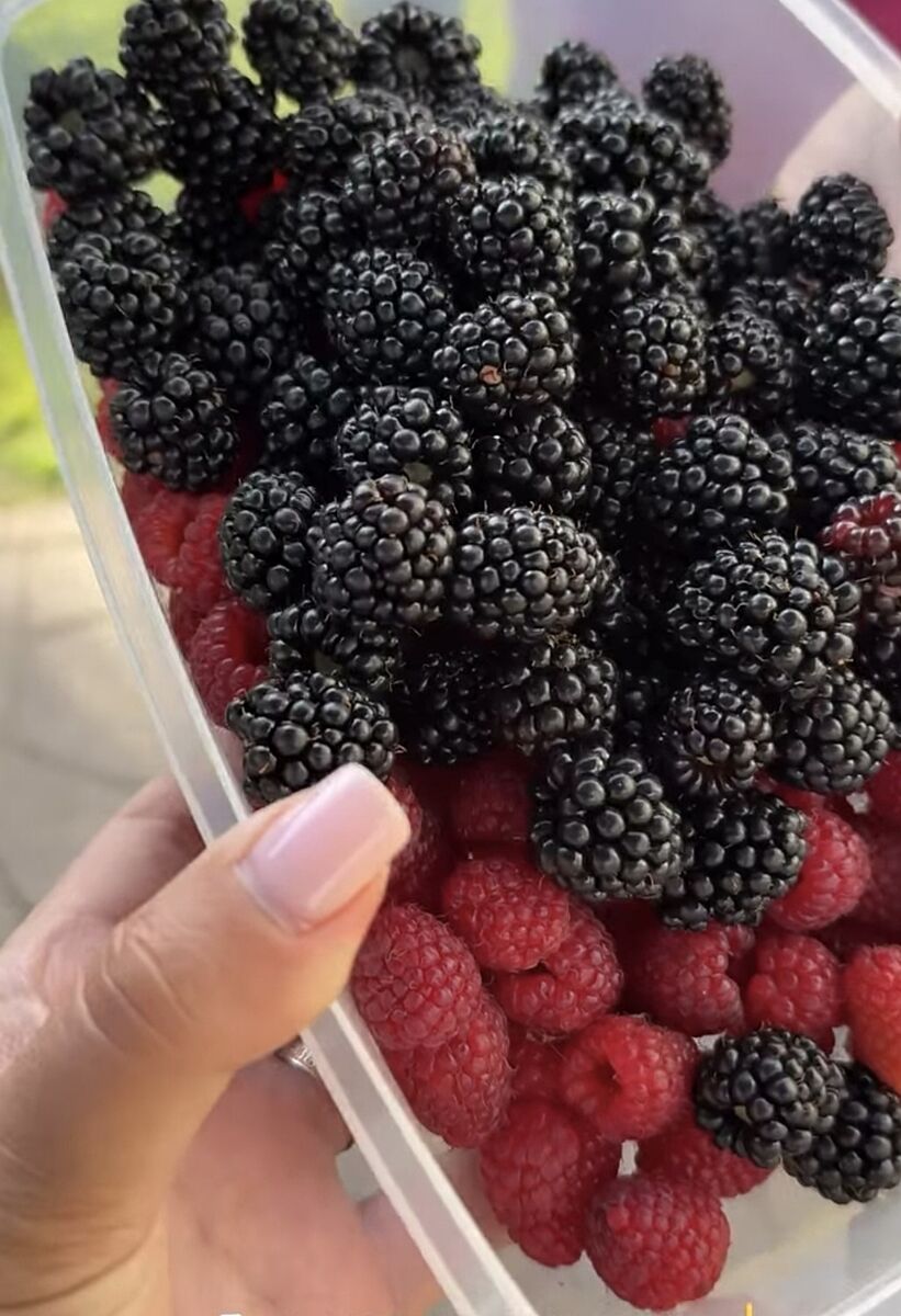 Ежевика кстати,как созревает,очень сладкая и огромная,это у мамы.А малина не очень сладкая,хотя дорогие сорта и крупная