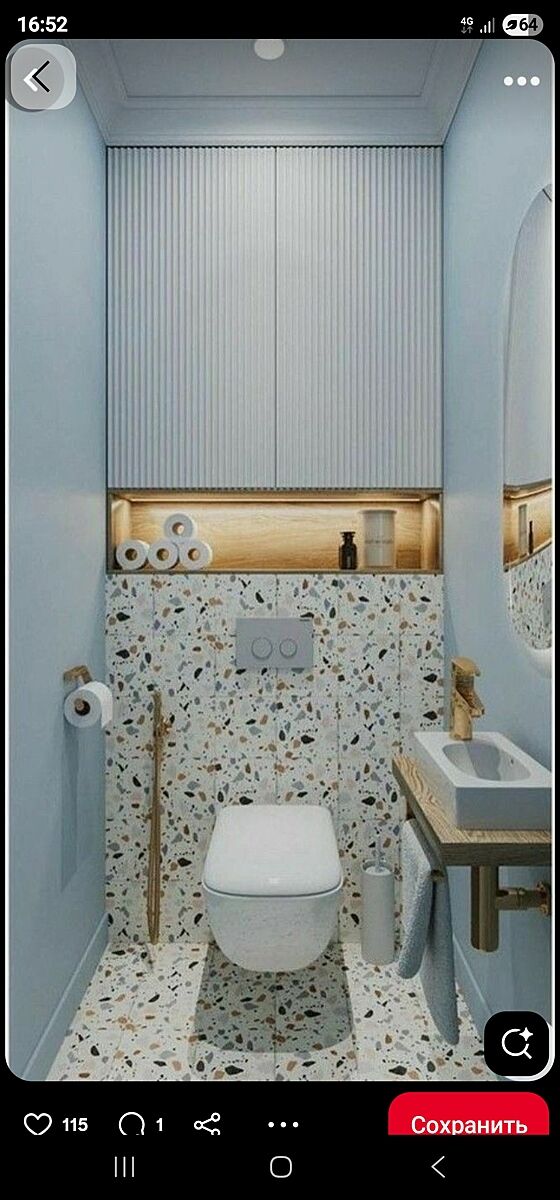 Та не. Белая будет слишком светло и просто. Цветные точки смотрите. На ваше коричневые и голубые. Я бы в голубой смотрела. Коричневый для санузла не очень
