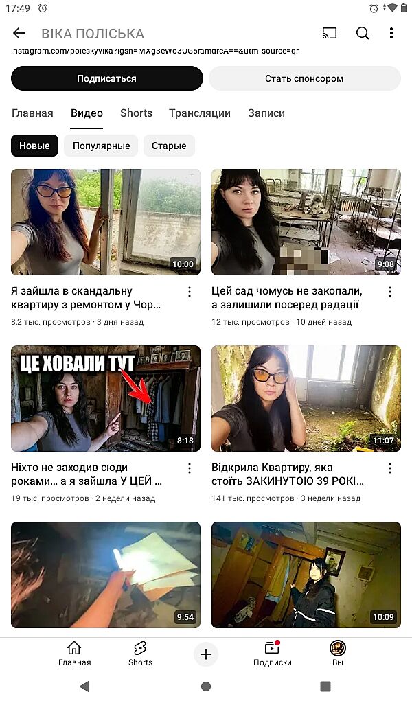 я бачила нові відео, а зняті 2017 рік і так далі. Дивлюся часто відео про Прип´ять