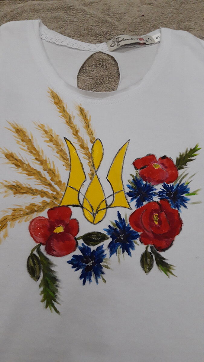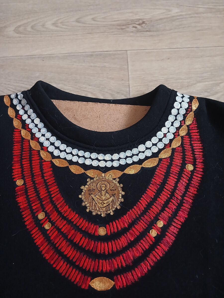Рисую еще, но редко на футболках и свитшот себе разрисовала ( колье в украинском стиле )