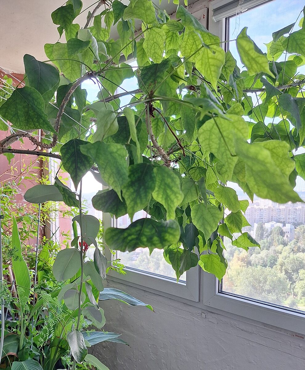 Причем косточки валялись в горшке пустом и случайно попали в грунт. Пришлось по фотке гуглить,что это взошло. И за год выше окна выросла. Она как живая.