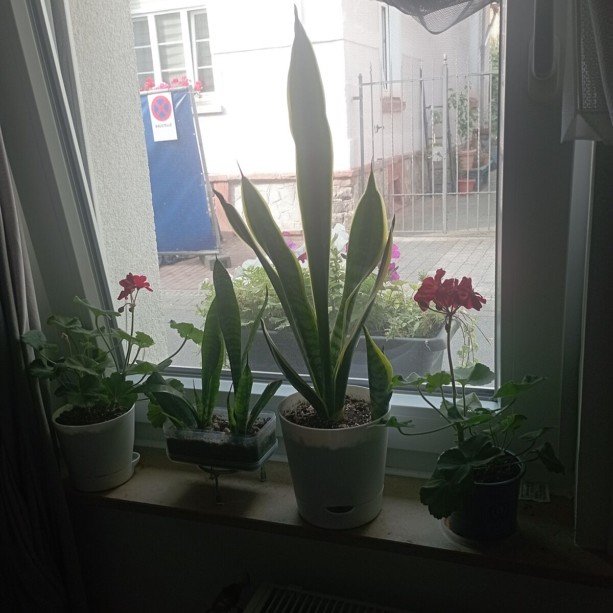 Сейчас это сансенверии, эухарис-жду цветения, и пассифлора из косточки, которая растет как монстр и заняла пол окна.