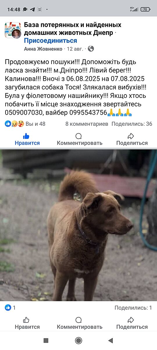сбросила в группы ОСББ по левому берегу Днепра и на сайт Интерпайпа, пусть найдется песик.