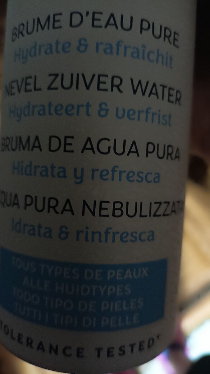 Приклад на фото. Це brume d´eau pure тобто такий водяний як пар, він як трохи прохолодний. Він робить свіжіше шкіру, може використовуватися коли завгодно. Просто у сина зараз вкладання, то я втемну фотографувала перший що попався флакон.