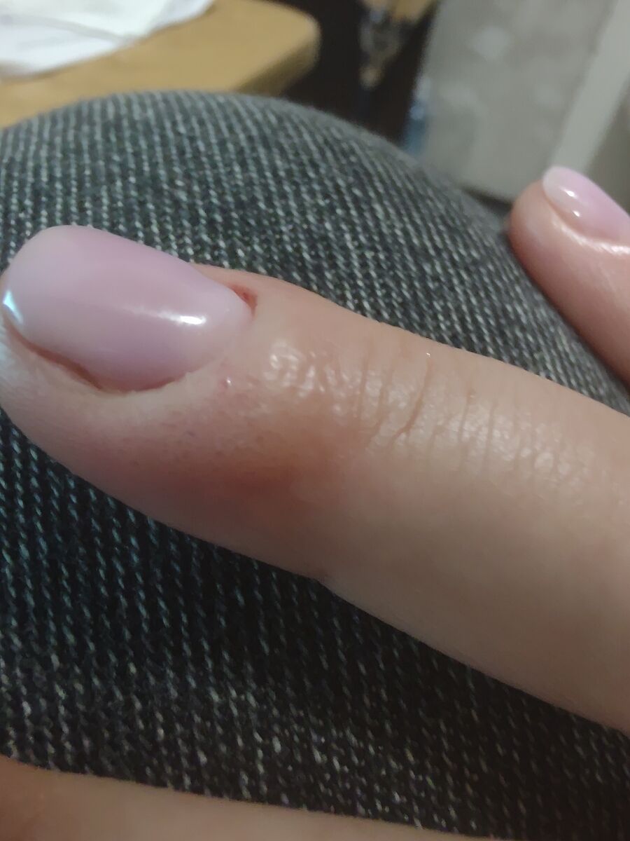 Поріз один є, але такі крапочки на кутикулі на всіх пальцях, на цьому просто найбільше видно і його сфотографувала.
