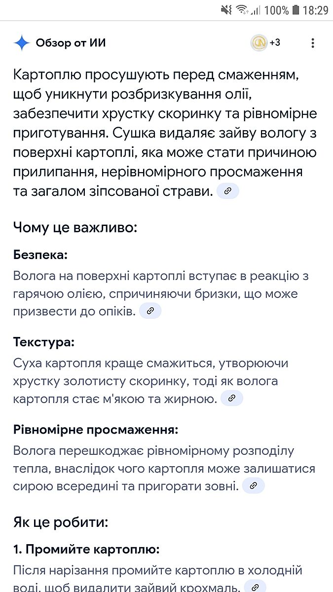 Ви реально картоплю смажите за порадами ШІ? Все життя і ми, і маими, і баби, і прабаби смажили картоплю і ніхто нічого не мив і не сушив, і смачно виходило.