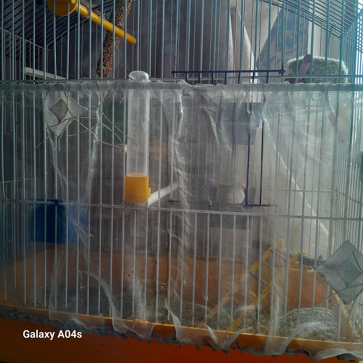Доброго ранку! Зі святом! Буду рада вам підказати, якщо моє рішення вам допоможе - побачила на Алієкспрес таку сіточку на клітку і зробила сама з органзи. У мене пташки невеликі, але сміття від них багато і мені допомогло