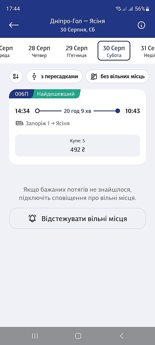 Глянула с Днепра на 30.08 можно билеты взять сейчас.