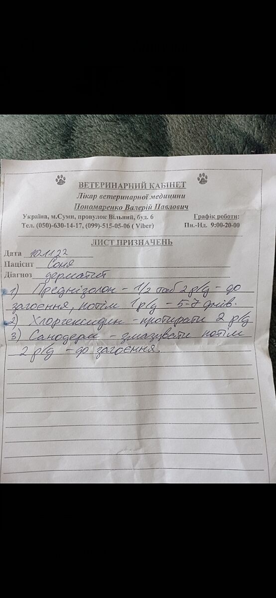 А чего к ветеринару нельзя поехать? Какие диагнозы к инструкции таблеток и мази указаны? Почитайте про эти заболевания? Позвонить ветеринару нельзя? Они по идее к себе в базу вносят животное и их болячки, может другое что посоветует? Чат got что говорит? Не призываю лечить по нему, но послушать что он скажет не помешает.