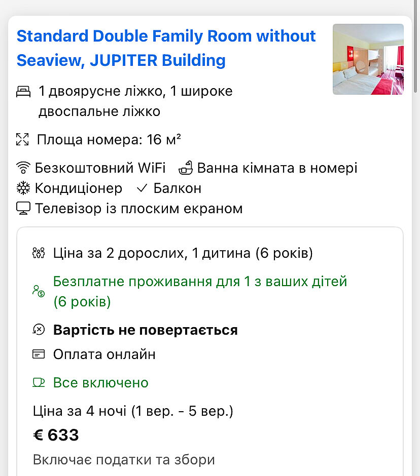 Підкажіть, будь ласка, в цьому готелі їжа включена у вартість чи ні?