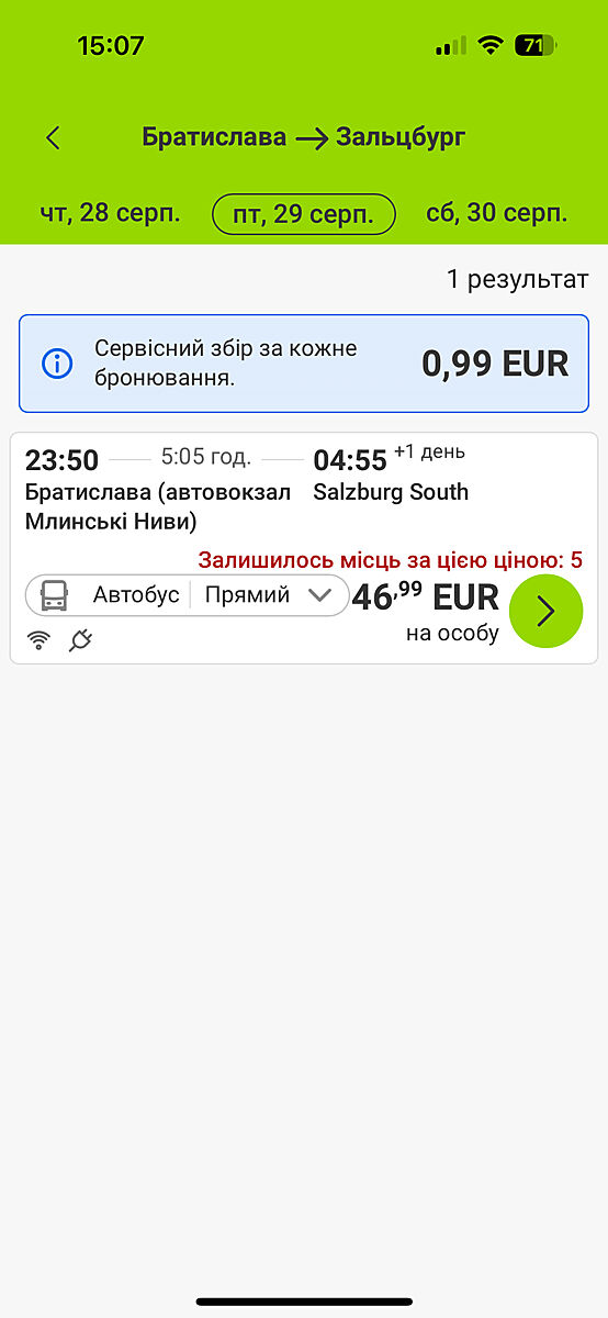 дякую, дивилася з Млинських нив як доїхати до Зальцбурга автобусом через додаток Flixbus , мені напевно так було б простіше.