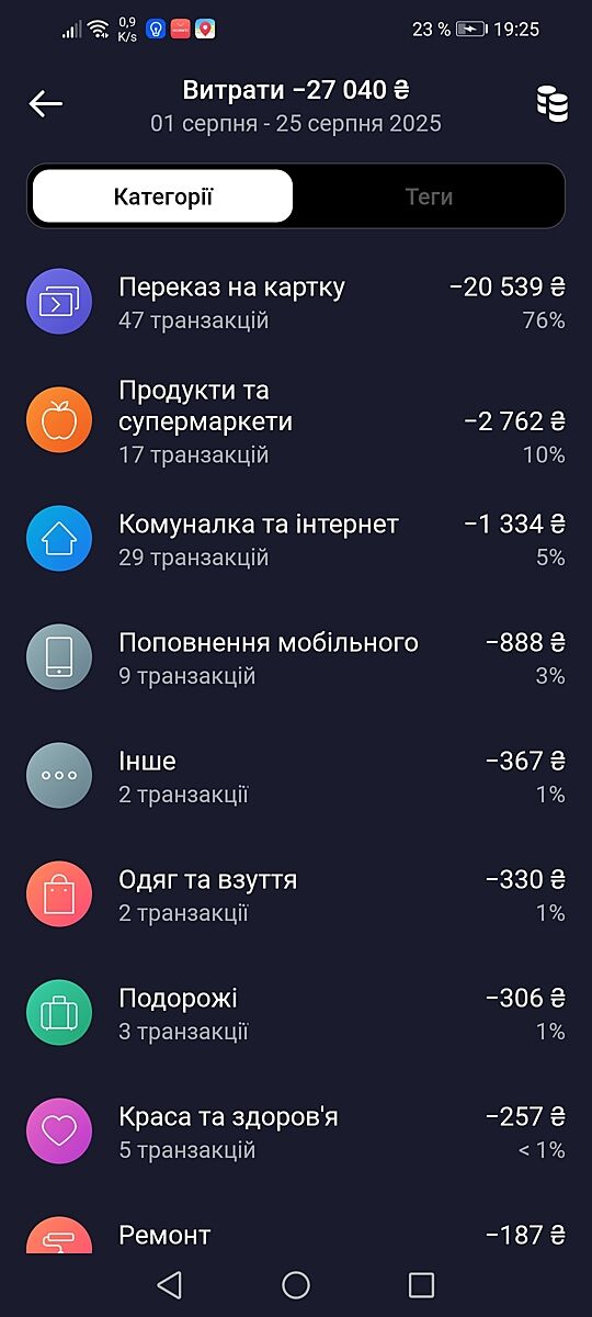 Якщо я вам свою карту покажу, то там витрати на продукти до 1000