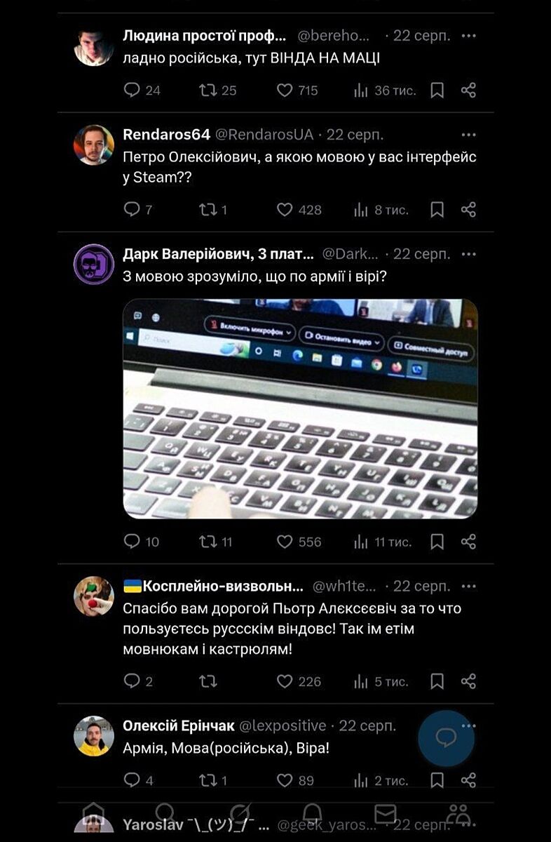 Усі свої сайти-проекти-соціалки дуже гарно українізували (це я про тих, хто до початку повномаштабної війни росії проти України були російськомовними. Це розумні успішні люди, трохи поцікавились історією - вже мені розказують такі моменти, що я переживаю, шо Саша з Маріка буде більшим бандерівцем ніж наша подруга Дзвінка з Виноградова.
