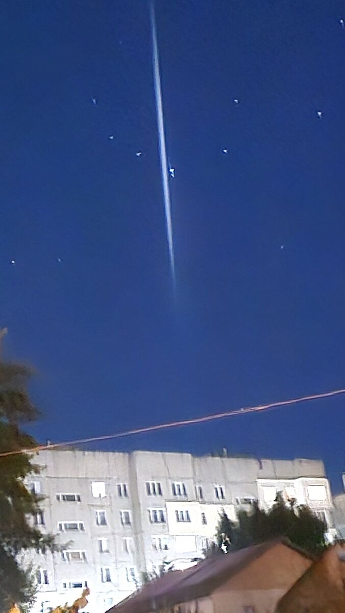 Эти фото по всем пабликам. Этот луч было виден по всей Украине. Супер мега новое ПВО?? Отследили уже по куску типичной многоэтажки??