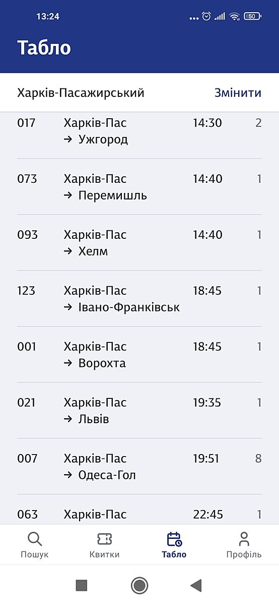 Нужно направление Харьков - Рахов. Я понимаю что билетов нет, предлагает отследить. Но как просто посмотреть расписание и увидеть номер поезда