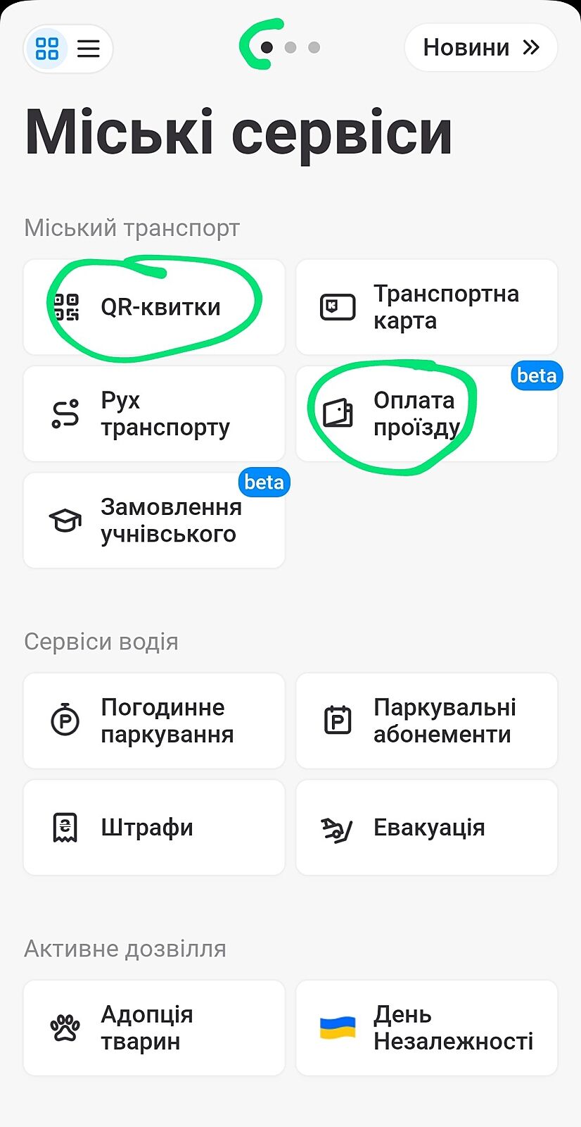 ставите київ цифровий, на самому лівому екрані можна або купити QR квитки і потім відсканувати їх на валідаторі, або вибрати ’оплата проїзду’, зчитати QR код з стіни транспорта і потім вибрати кількість