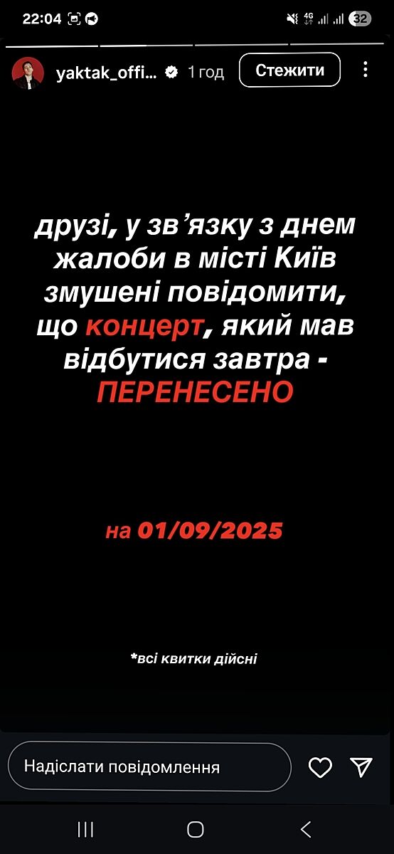 Концерт що мав бути завтра -відмінили, сьогодні концерт відбувся