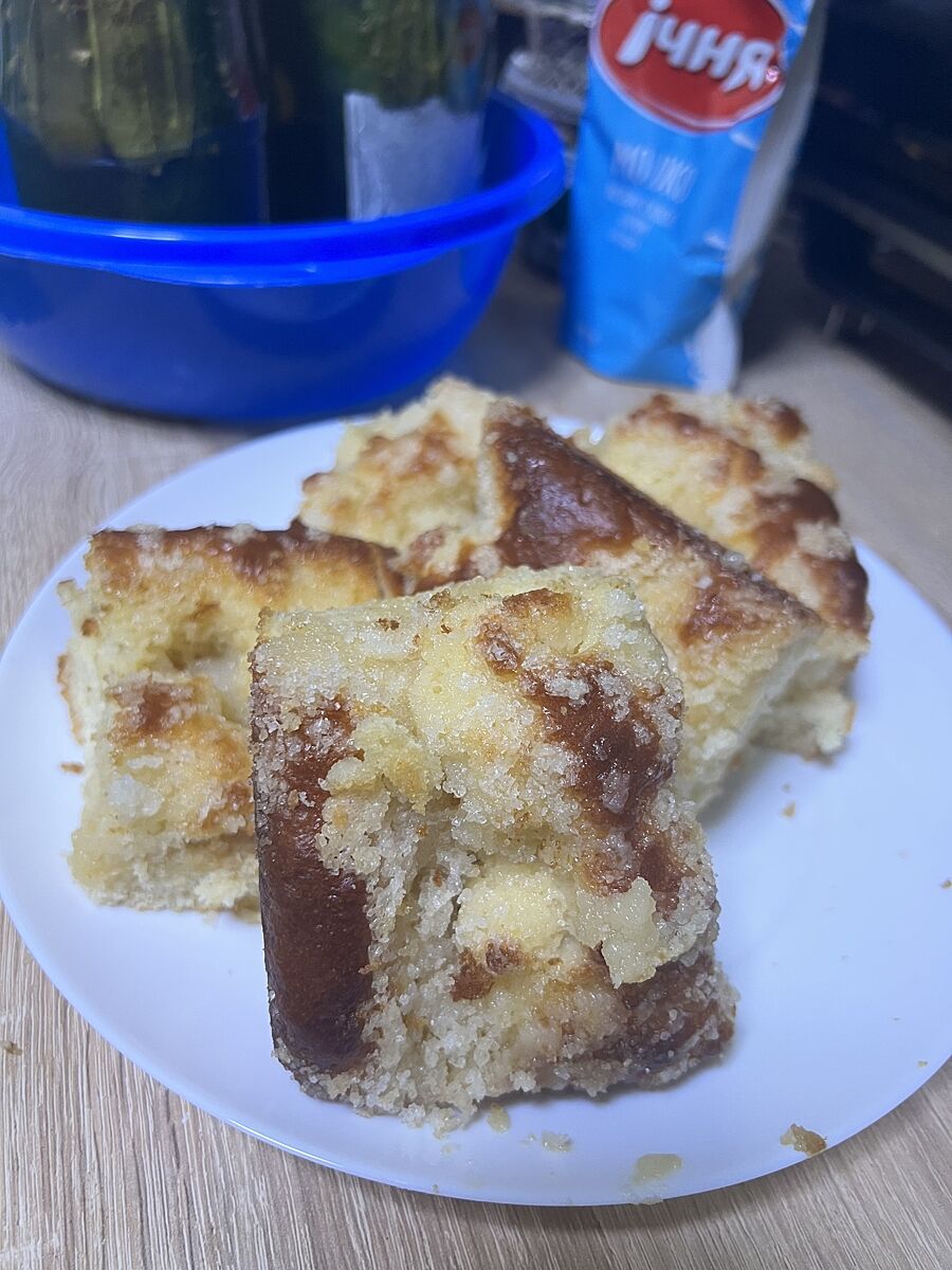Сахарный пирог сейчас пекла. Мне нравится, что долго не черствеет. Еще творожное печенье.