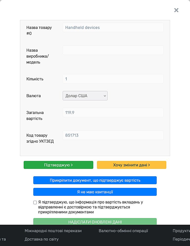 Я это прочитала в интернете только что, если я сделаю подтверждение что продавец правильно указал, я должна предоставить квитанцию, а квитанция на 235 дол.