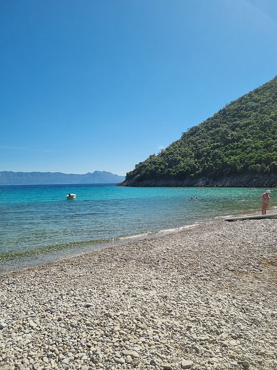 Хорватія 3 тижні, були у двох різних місцях, в першому недалеко від дубровніка, море було тепле, друге - біля трогіру, море холодне