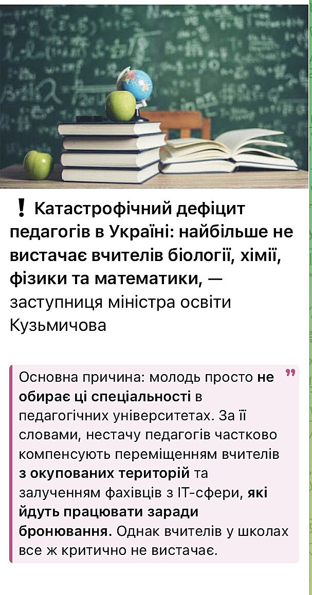 Ви не праві. Працюю в школі. Є супер спеціалісти прийшли, а є на от.....