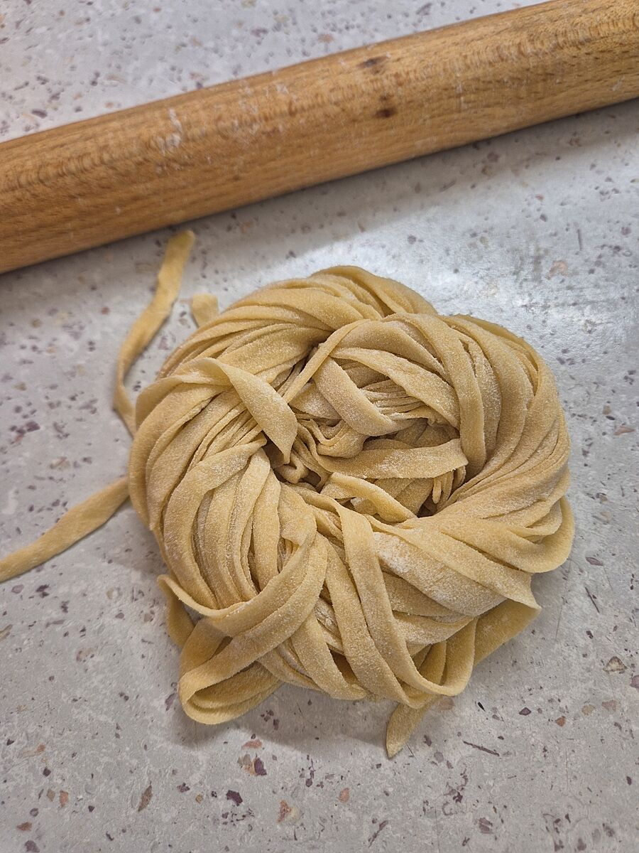 Лапшу домашнюю раскатала, сейчас суп сварю.