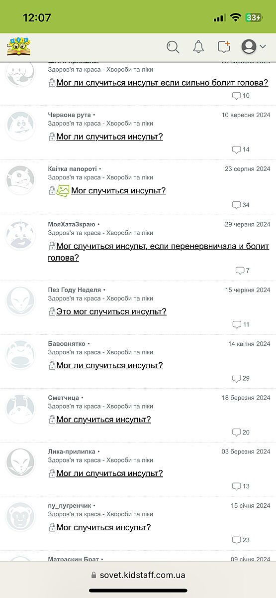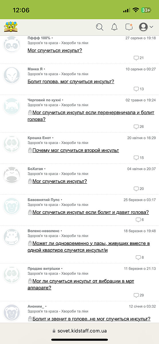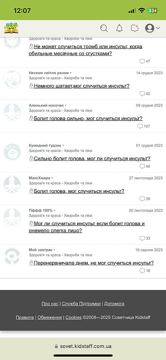 чтото там подзаболело то нога, то ухо, она сразу звонит на 103 помогите, инсульт.