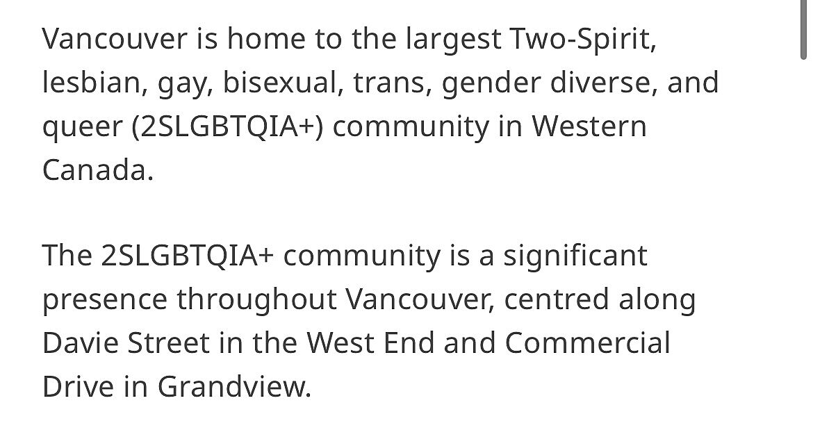 Не, это просто рандомная статья. Если погуглить Vancouver и LGBT - найдете целые статьи на эту тему, гайды для представителей сообщества - так как это столица ЛГБТ Канады. Я, как человек, поживший в их Мекке и вкусивший все эти прелести на собственной шкуре - считаю, что чем больше у них прав - тем хуже качество жизни людей вокруг. Они как в той поговорке, где свинья кладет ноги на стол. Дай им полную свободу в том, что они делают - и ваша жизнь станет адом. Вопрос, что своим навязыванием этого стиля жизни в школах и проявлением этого образа жизни на улицах во всей красе, может кому-то не нравиться - крамольный, порицаемый, наказуемый. Нам дали это понять на первой же встрече со школой (специально организованной для таких дикарей, как мы - украинцы, белорусы, грузины и т.п. - к которой я, кстати, отнеслась с пониманием в самом начале, приняв, что мы дикари и опустив голову). Что если кто-то посмеет заикнуться о своих правах - его запишут в гомофобы со всеми вытекающими. Сидите, терпите, «можете не водить ребенка в школу в эти дни.» Права есть лишь у них.