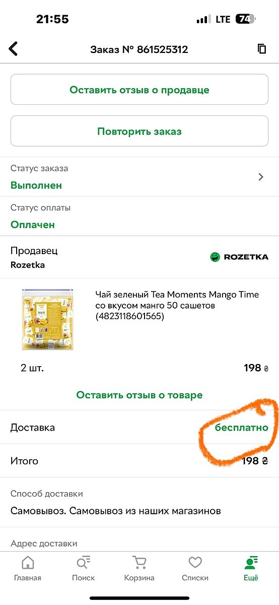 Мне корм кошачий и чай разбили на 2 заказа, и чай за 198 грн доставлялся с другого склада бесплатно