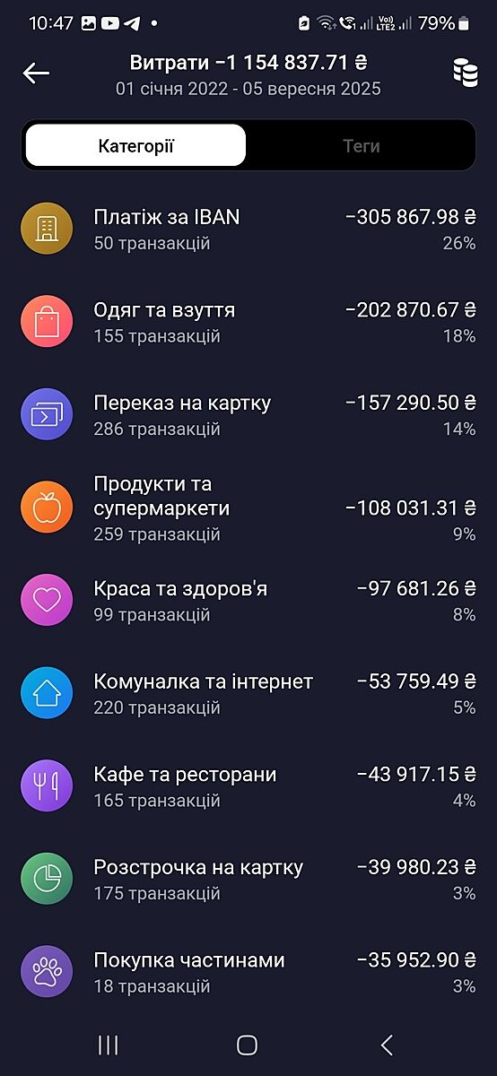 Ось за 44 місяці. Ще щось з карти чоловіка, щось за готівку купувалося. Але більшість з цієї суми дітям і чоловіку.