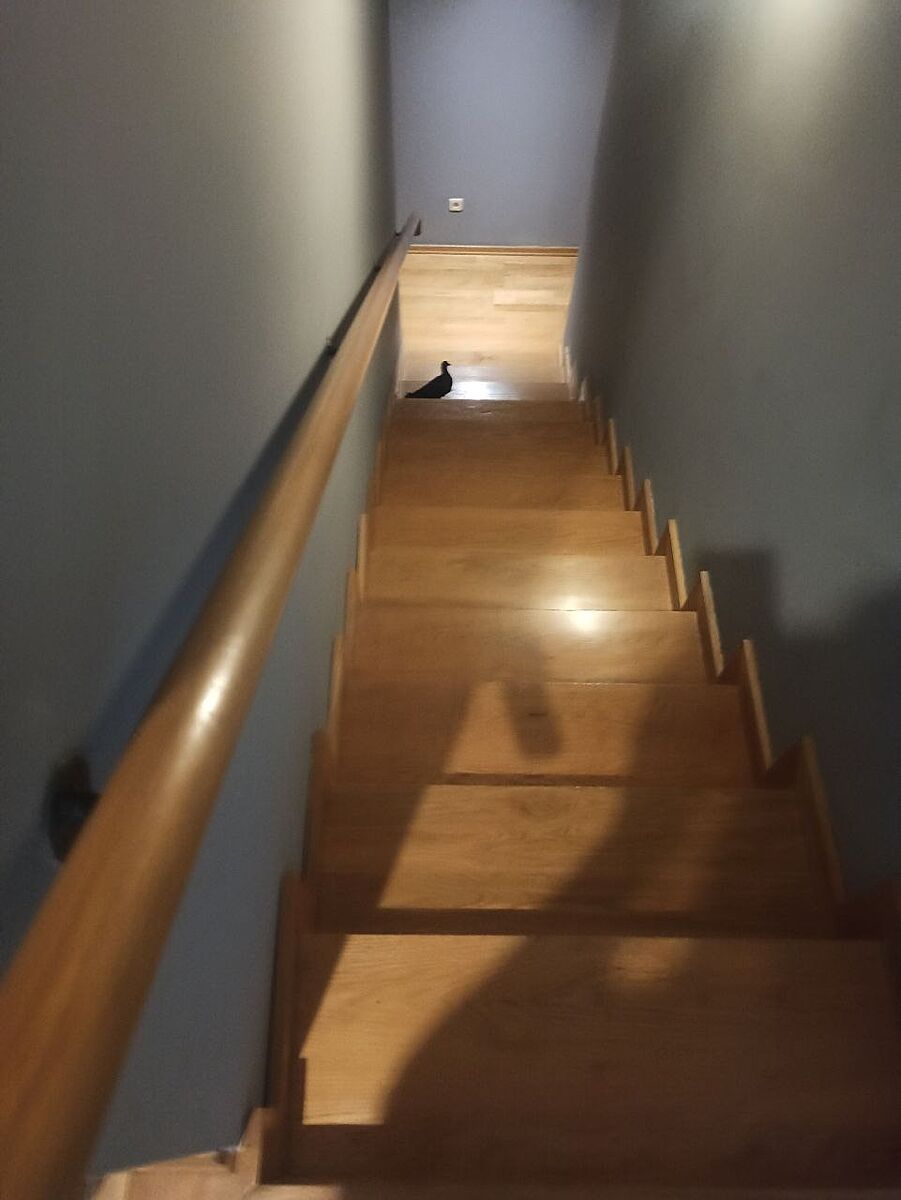 Наверное, очень классно было при покупке квартиры платить за бесполезную площадь лестницы. И, думаю, очень интересно это отапливать обогревателем зимой, ведь между комнатой и этой лестнице нет перегородки, а потолок того нижнего помещения в 2 этажа.