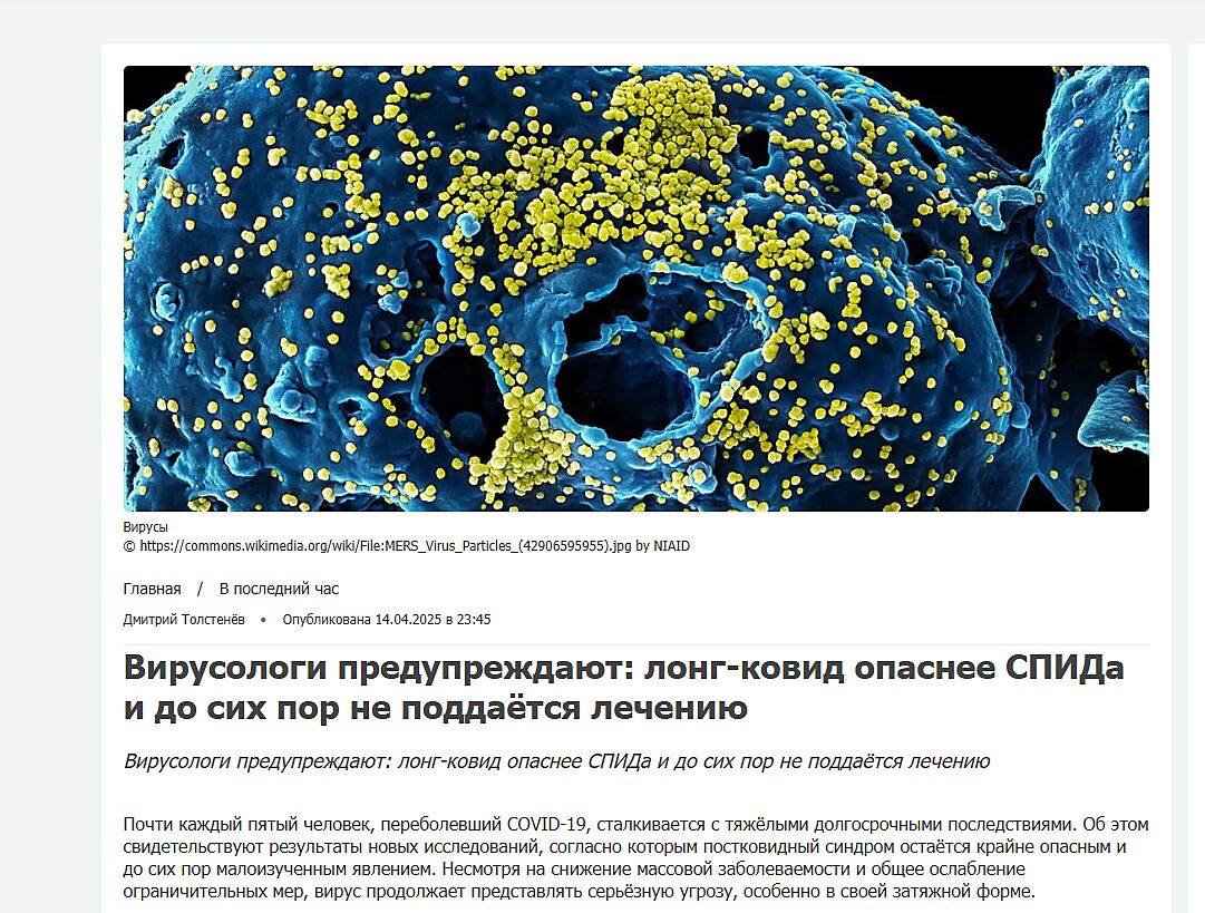 Я просто рассказываю свой случай, у меня из-за лонг ковида (прошу не путать с острым ковид) ушло почти полтора года моей жизни, не вылазил с больниц и стационаров, сотни врачей и несколько потраченных тысяч $ на это все, бывали дни\недели когда лежал пластом практически. несколько операций, и лишь помогли старые препараты которые используются от вич, которые мне посоветовали зарубежные доктора. которые занимаются этими исследованиями (у нас протоколов даже нет) в первые за последние месяцы после них я почувствовал себя человеком.